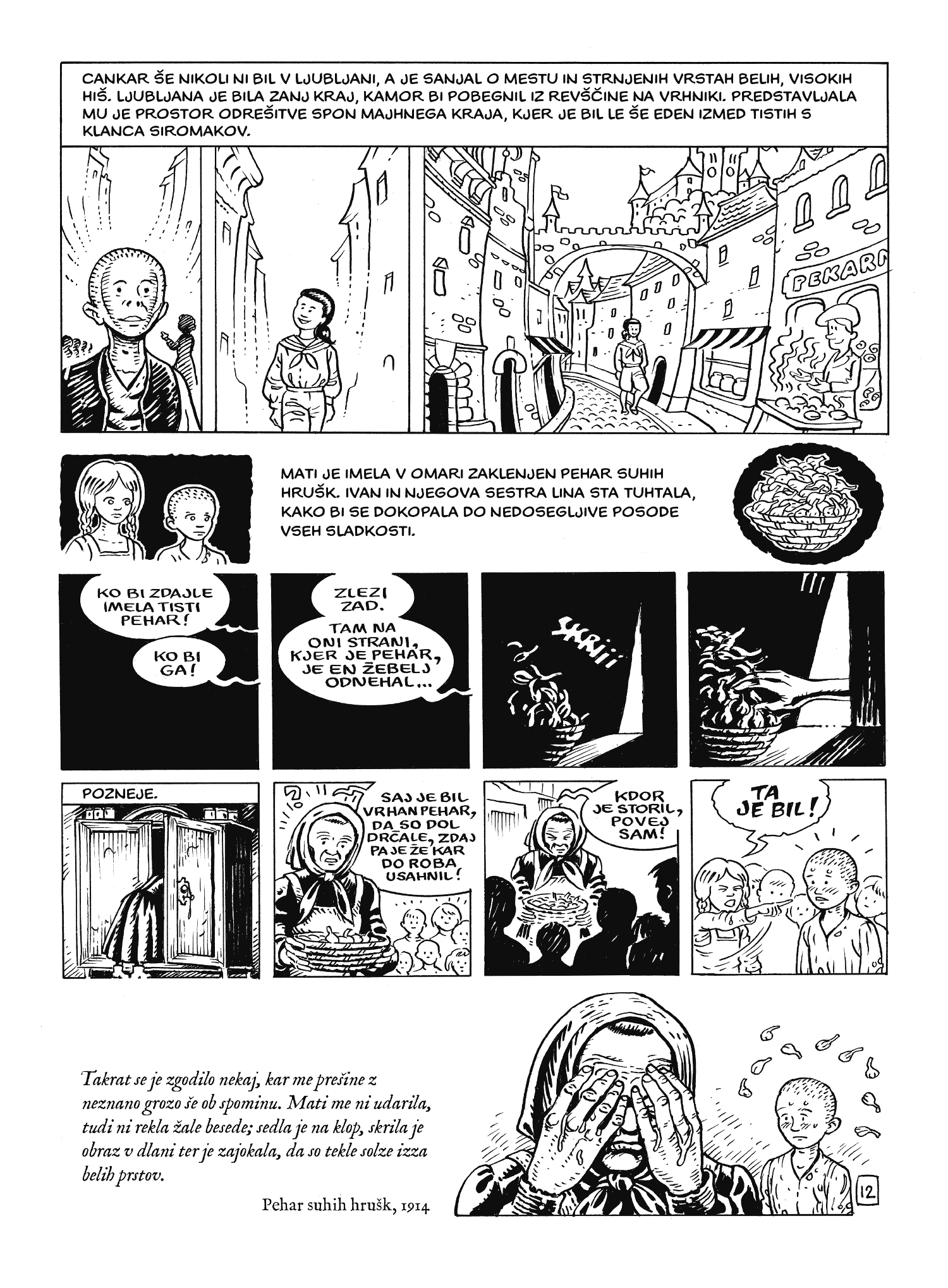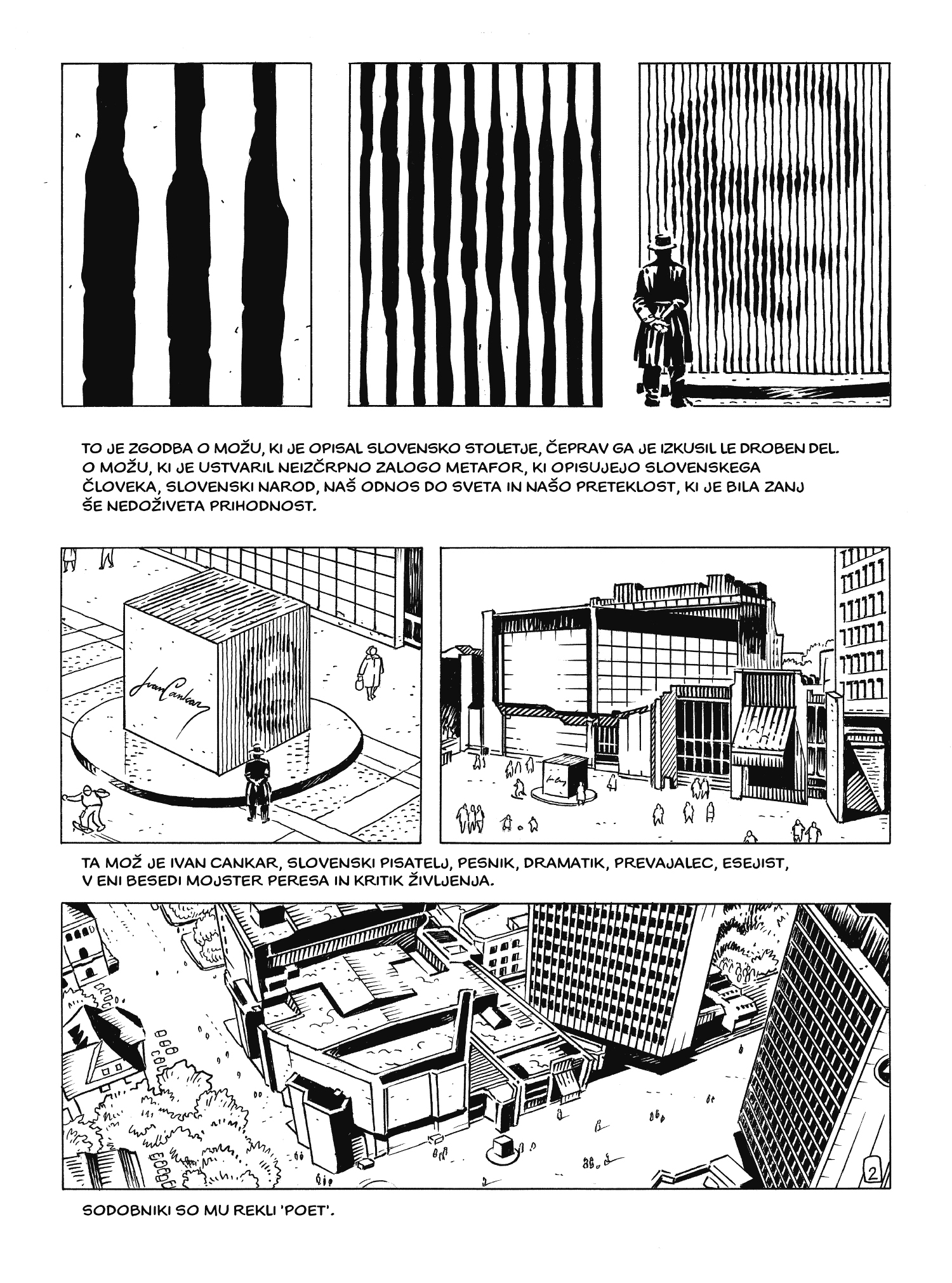 Mar res o Ivanu Cankarju vemo že prav vse? Nikakor! Od otroštva, ko je bil podoben korejskemu vojščaku, in enajste šole pod mostom, kjer so s prijatelji lovili kapeljne, pa do šolskih dni in pisateljevanja. Od Vrhnike do Ljubljane in Dunaja ter še kam. Ivan Cankar ni le brezmadežna in lepo počesana podoba z metuljčkom in mogočnimi brki, ki na nas zre iz šolskih učbenikov, niti samo podoba ponosnega umetnika v pižami in s kahlo na glavi namesto klobuka kot na eni od karikatur Hinka Smrekarja, ampak tudi vse tisto vmes. Stripovska pripoved je tako črno-bela le na vizualni ravni, sicer pa polna barvitih zanimivosti ne samo o Cankarju, ampak tudi o njegovih sodobnikih in njihovem času. Pisateljevo življenje, značaj in delo povezuje v neločljivo celoto, ki bi bila verjetno zanimivo branje tudi za samega Cankarja.