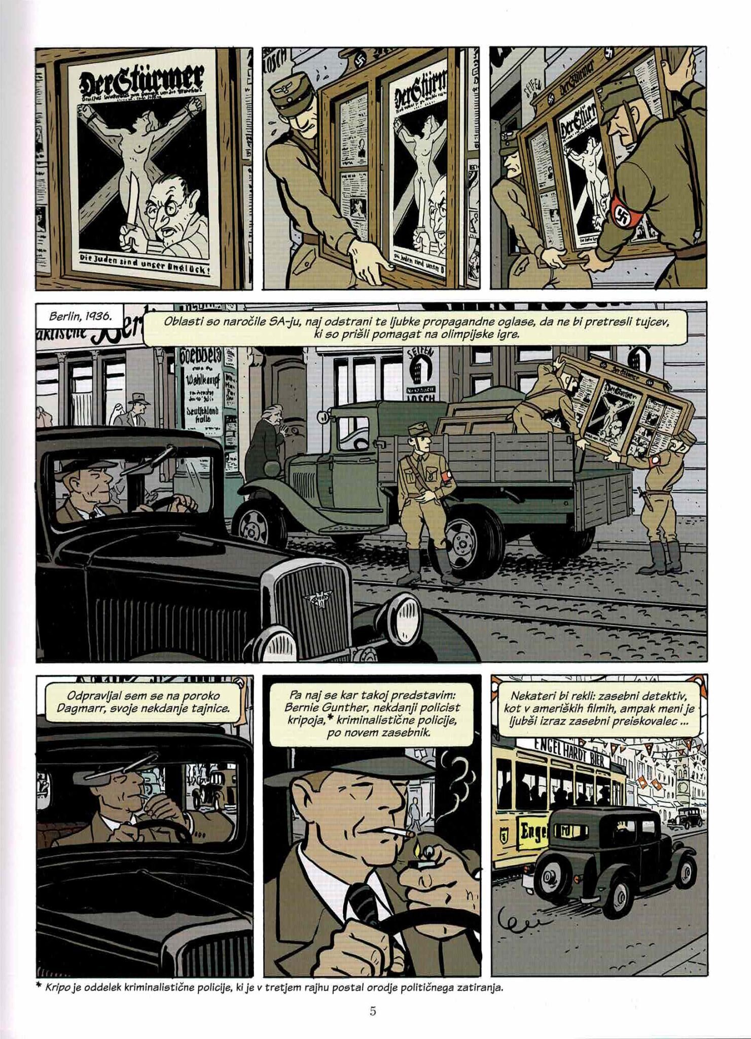Posmehljivi, samotni in bojeviti Bernie Gunther, ki pod nacističnim režimom preiskuje dobro in slabo, prepričljivo krmari po razburkanih vodah, po dnu in v visokih plasteh oblasti.
