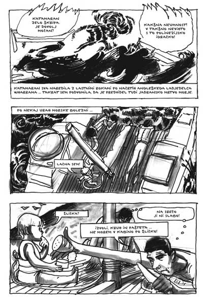 Nemirno morje Helene Klakočar je avtobiografski grafični roman, ki se začne leta 1991, ko družino med jadranjem po Jadranu nepričakovano doseže vojna v nekdanji Jugoslaviji. Počitnice se preobrazijo v beg, pot pa jih vodi proti neznanemu.