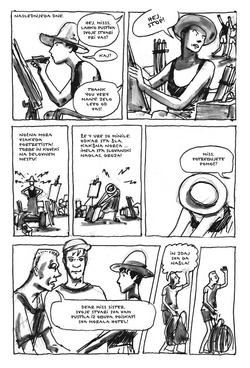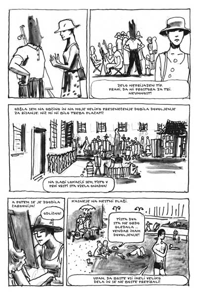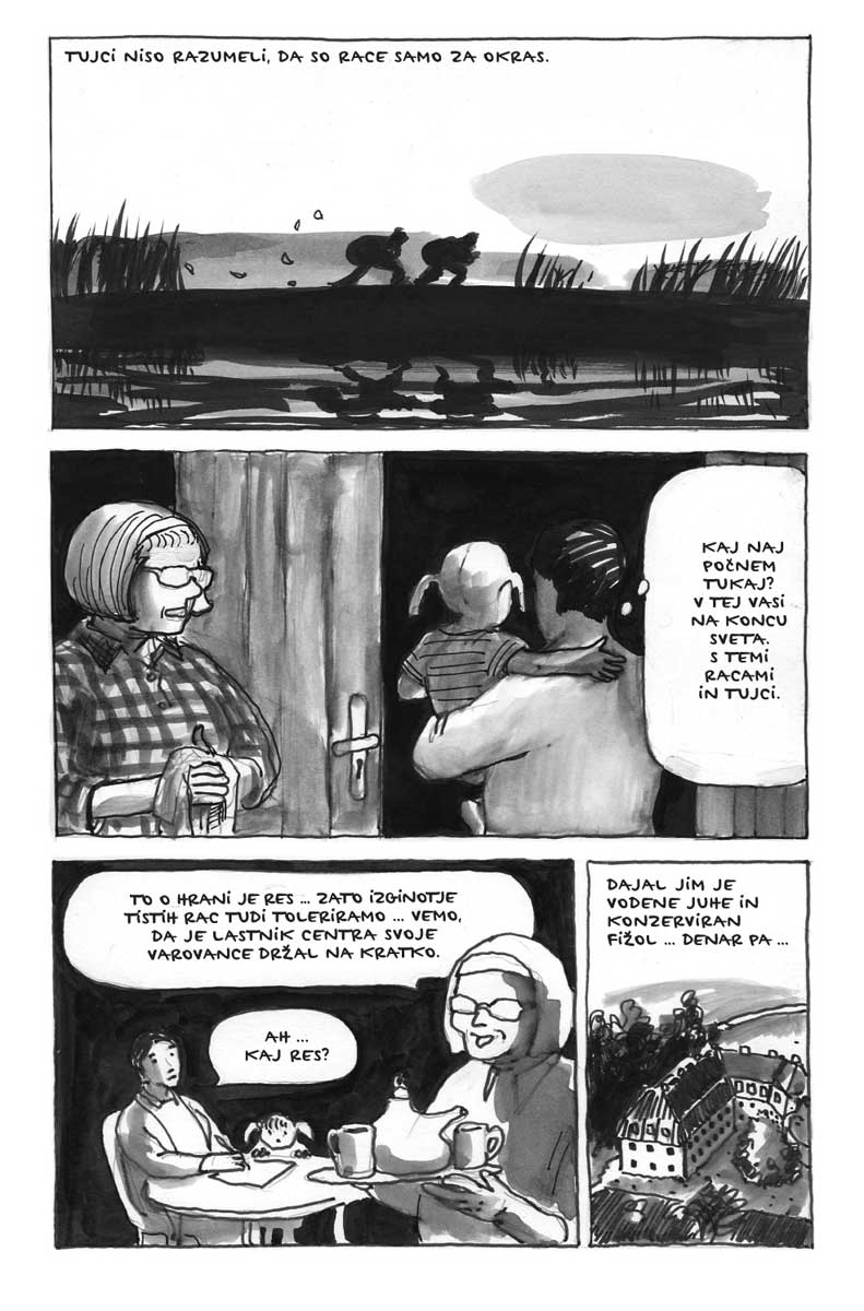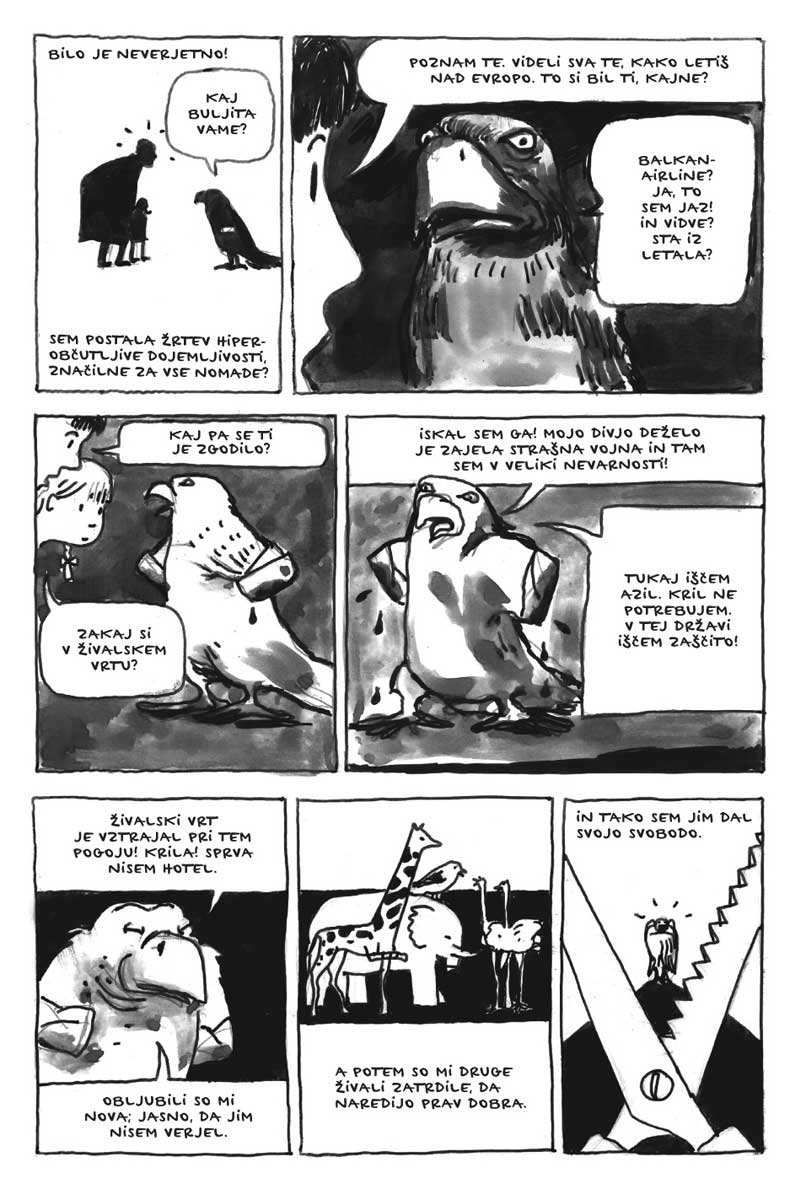 Delo je zasnovano kot dnevniški zapis, ki se razvije v stripovski roman. Avtorica z občutljivim opazovanjem in preprosto, skicozno risbo brez olepševanja pripoveduje o vsakdanu ljudi, ki jih vojna iztrga iz domačega okolja.