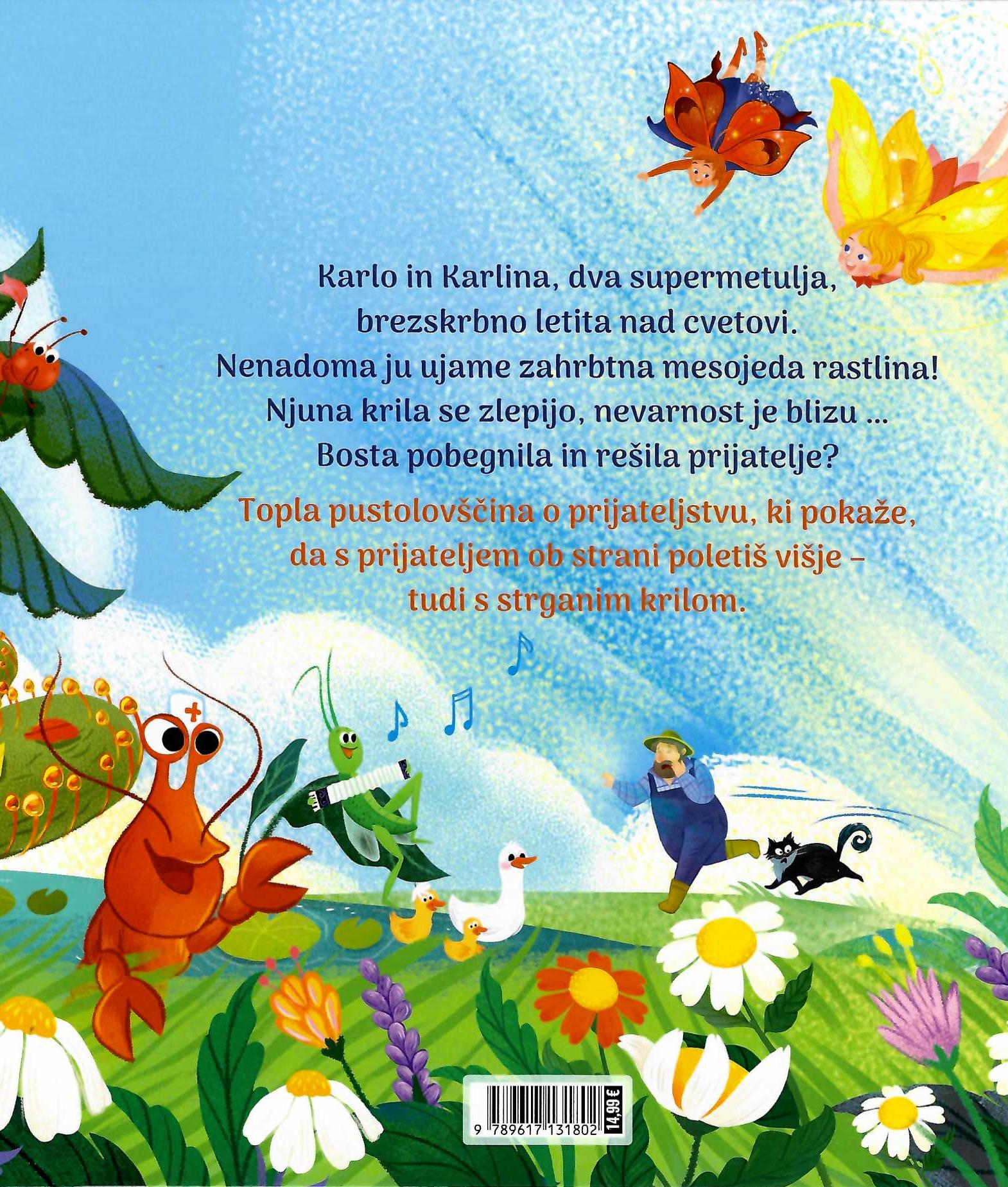 Na pisanem travniku nekega pomladnega jutra iz bub pokukata Karlo in Karlina – radovedna metulja, pripravljena na svojo prvo pustolovščino. A njun brezskrben polet se kmalu spremeni v preizkušnjo: njuna krila niso več popolna. Letenje ni več samoumevno.