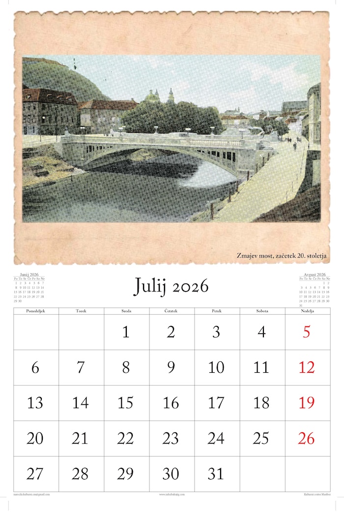 Koledar s slikami s starih fotografij in razglednic Ljubljane.