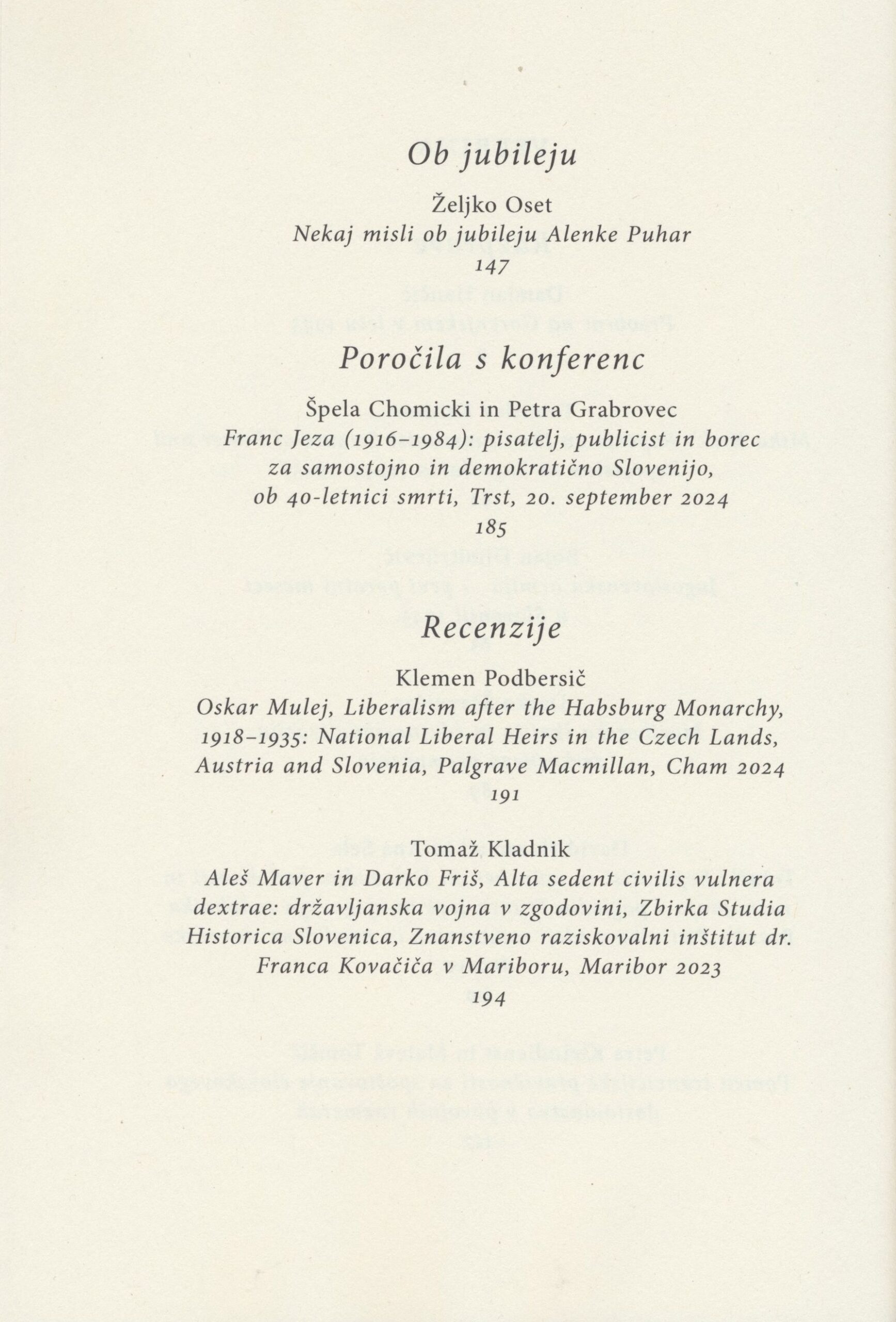 - Klemen Podbersič: Oskar Mulej, Liberalism after the Habsburg Monarchy, 1918–1935: National Liberal Heirs in the Czech Lands, Austria and Slovenia, Palgrave Macmillan, Cham 2024