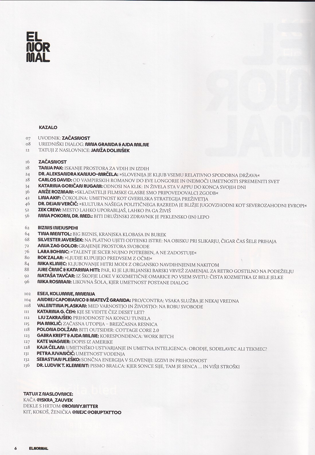 El Normal je revija o ustvarjanju, vztrajanju, pogumu, drznosti, napakah, (ne)uspehih in veselju do odkrivanja novega.