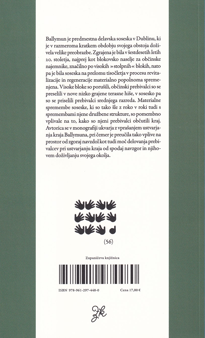 Avtorica se v monografiji ukvarja z vprašanjem ustvarjanja kraja Ballymuna, pri čemer je preučila tako vplive na prostor od zgoraj navzdol kot tudi moč delovanja prebivalcev pri ustvarjanju kraja od spodaj navzgor in njihovem doživljanju svojega okolja.