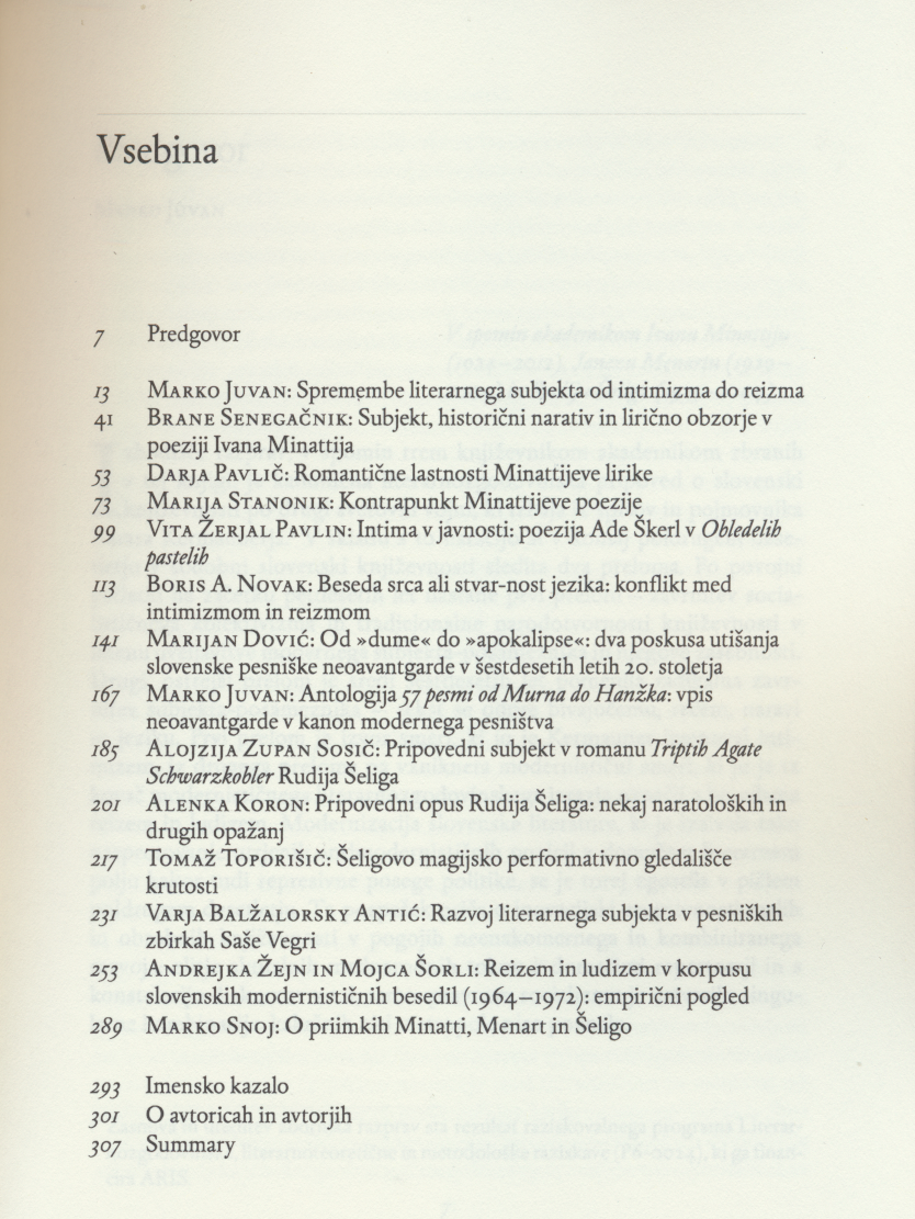 - Marko Juvan: Spremembe literarnega subjekta od intimizma do reizma
