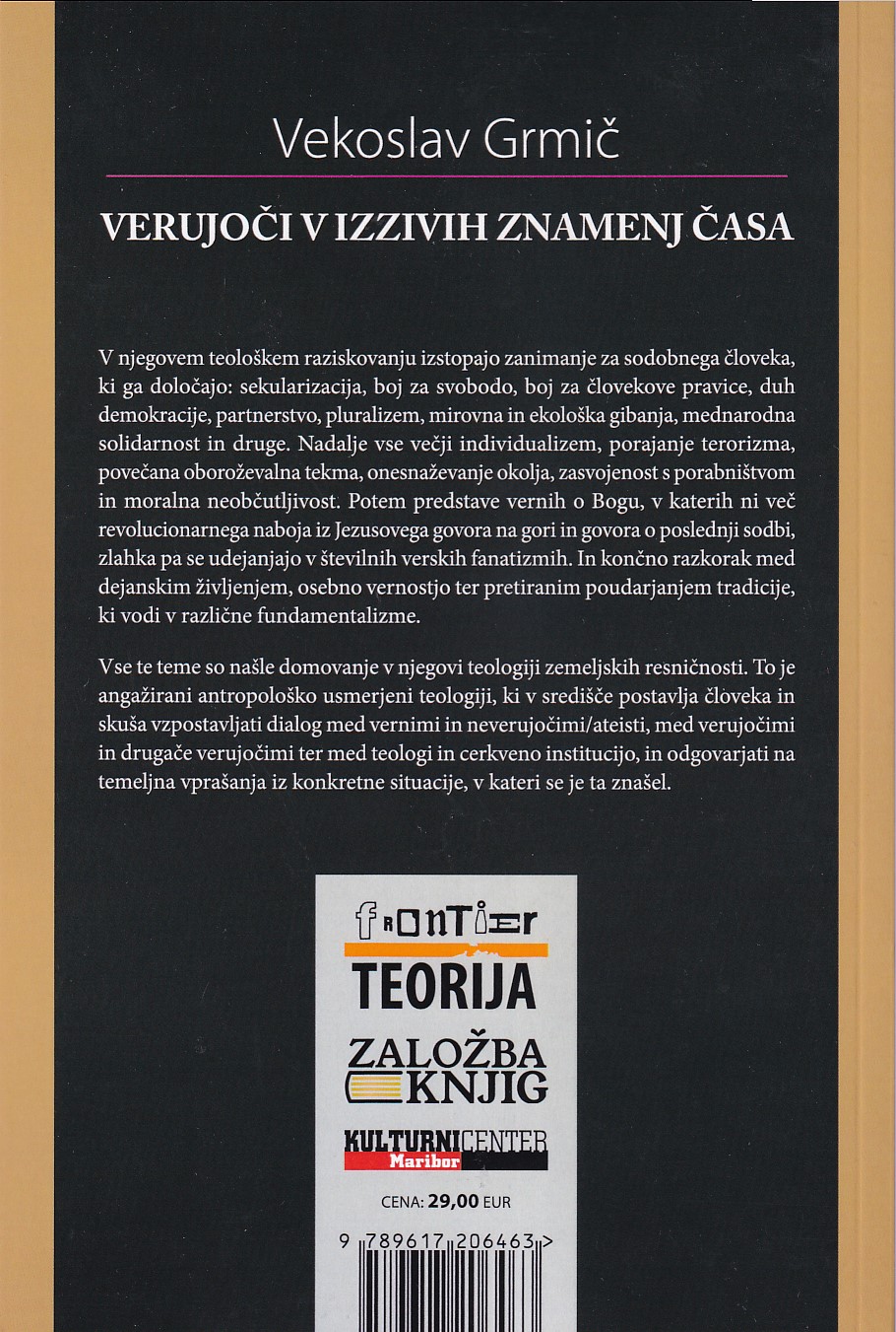 Vse te teme so našle domovanje v njegovi teologiji zemeljskih resničnosti. To je angažirani antropološko usmerjeni teologiji, ki v središče postavlja človeka in skuša vzpostavljati dialog med vernimi in neverujočimi/ateisti, med verujočimi in drugače verujočimi ter med teologi in cerkveno institucijo, in odgovarjati na temeljna vprašanja iz konkretne situacije, v kateri se je ta znašel.