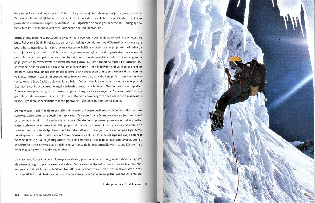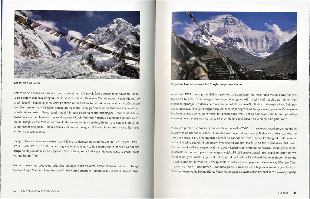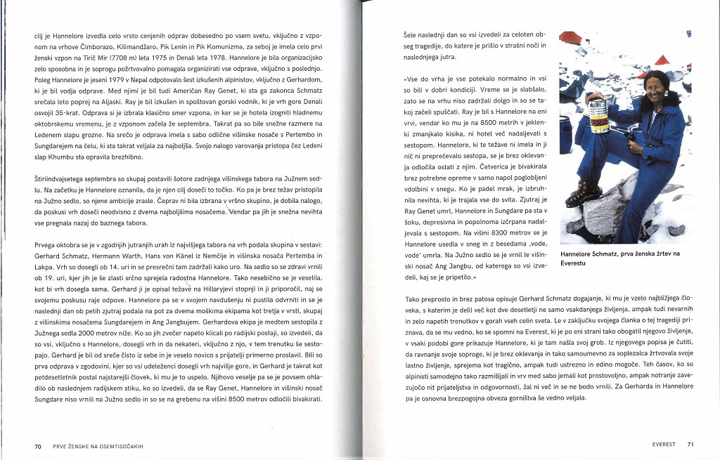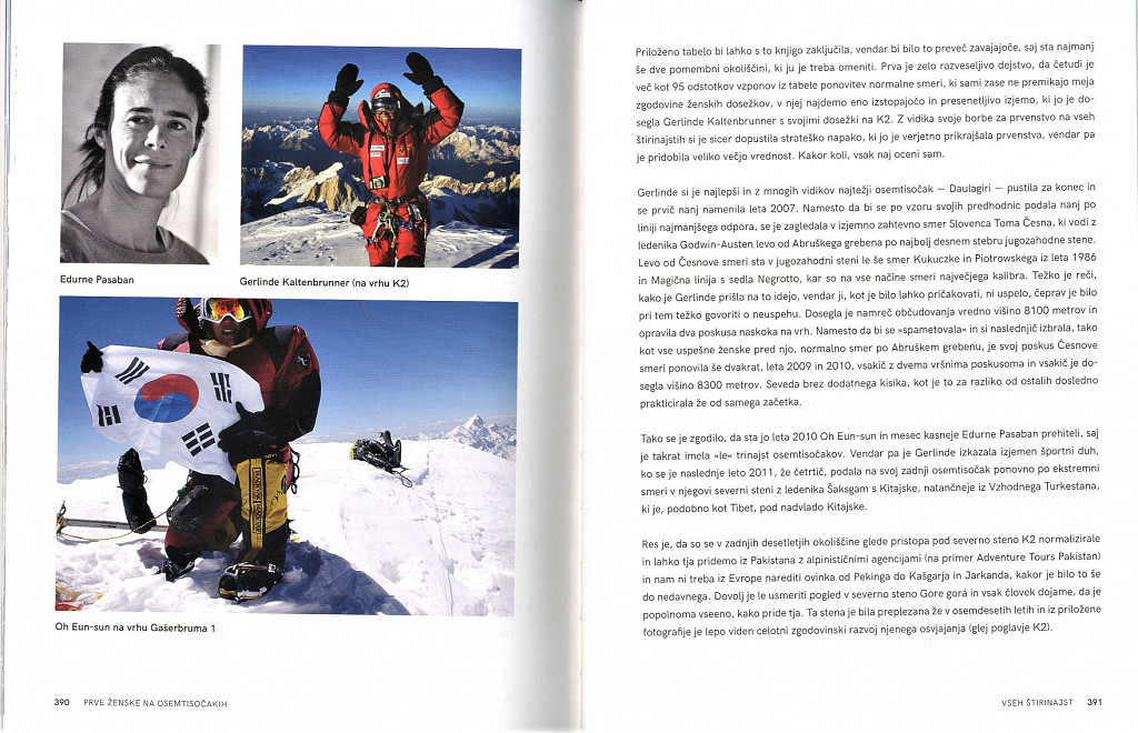 V pričujoči knjigi sta omenjani tudi Slovenki, Marija Frantar z vzponoma na Nanga Parbat in Kangčendzengo in Marija Štremfelj, prva in do zdaj edina Slovenka na Everestu, ter njen vzpon na Broad Peak.