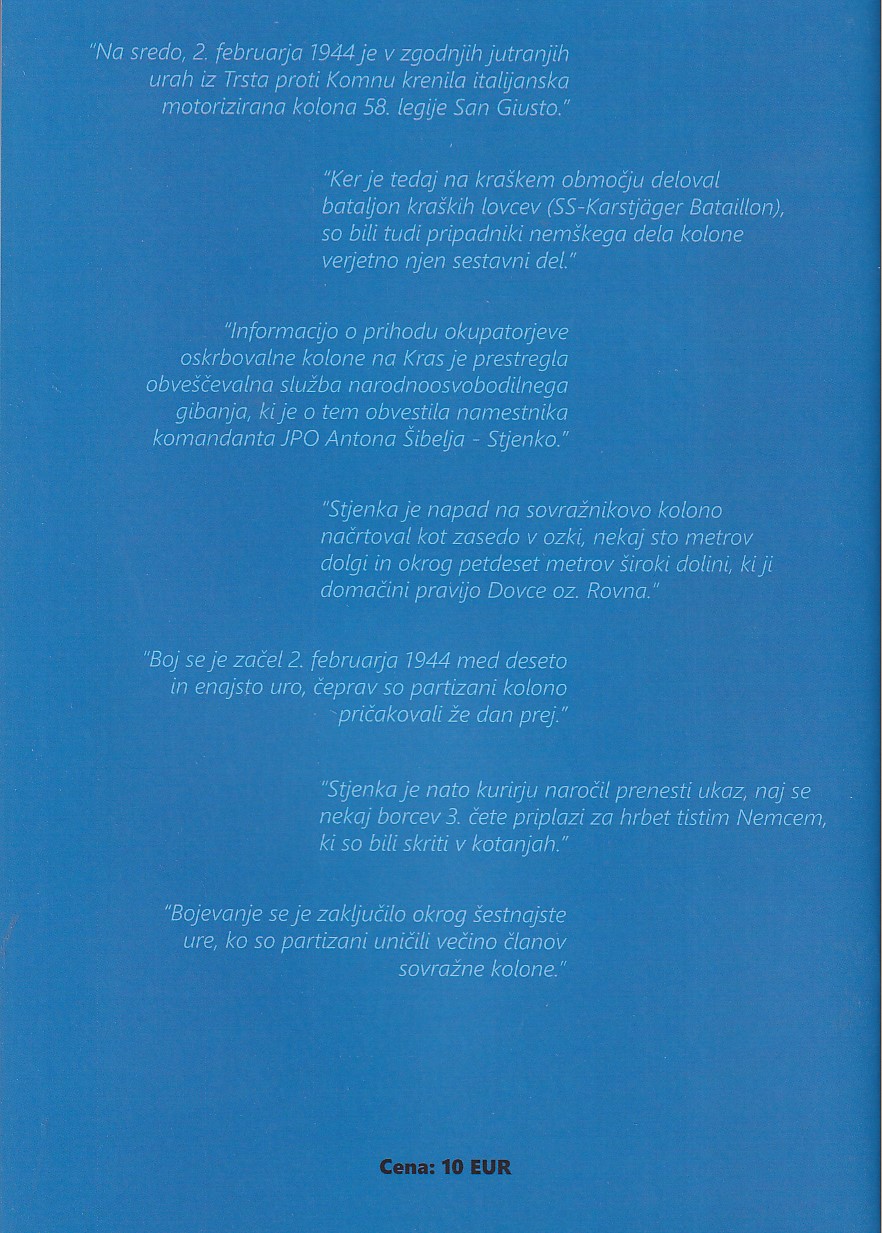 Osrednji namen knjige je na celostni način interpretirati boj v Dovcah z namenom, da kolektivni spomin o njem ne bi tonil v pozabo. Raziskovalna snov v tej publikaciji ni izčrpana in opdira prostor temeljitejšemu raziskovanju boja. Zagotovo pa lahko trdimo, da je bila predstavljena zaseda ena najbolj uspešnih partizanskih vojaških akcij na Primorskem.