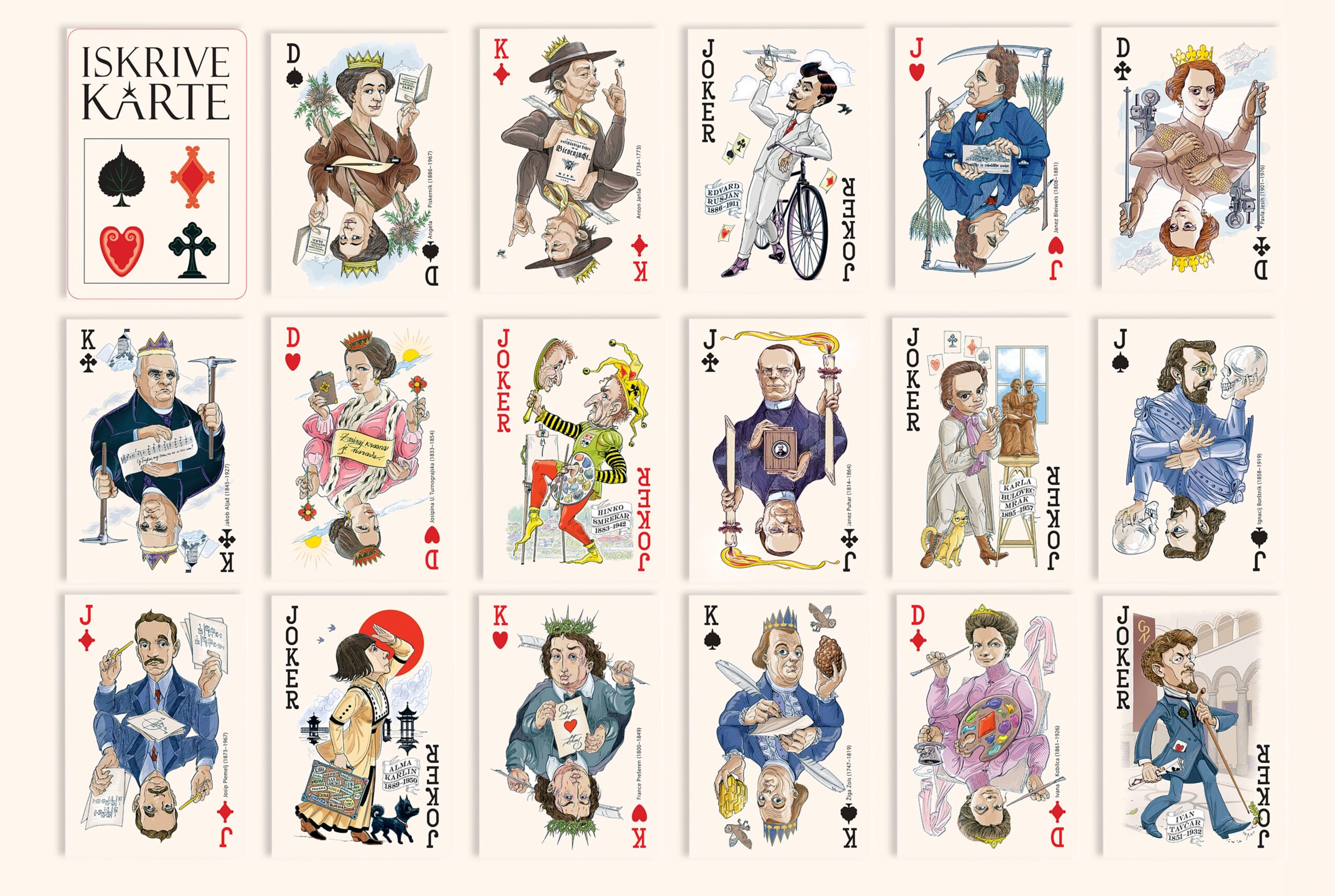Projekt Iskrive karte je nastal na pobudo Marka Arneža in Polone Hafner Ferlan na Šolskem centru Kranj. V knjigi Iskrive Slovenke in Slovenci, 17 avtorjev esejev predstavlja izbrane osebnosti iz različnih strokovnih in osebnih zornih kotov. Besedila razširjajo risane podobe v poglobljene zgodbe o vrednotah, idejah in času, v katerem so živeli in delovali.