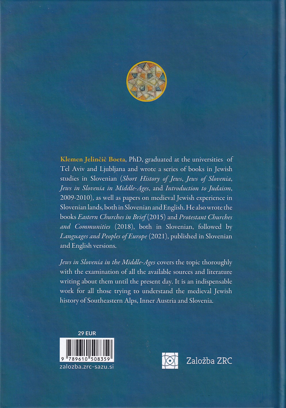 Angleška knjiga je predelana in posodobljena različica knjige Judje na Slovenskem v srednjem veku (Slovenska matica, 2009) in podrobno preučuje vse dosegljive vire in literaturo o njih vse do danes.