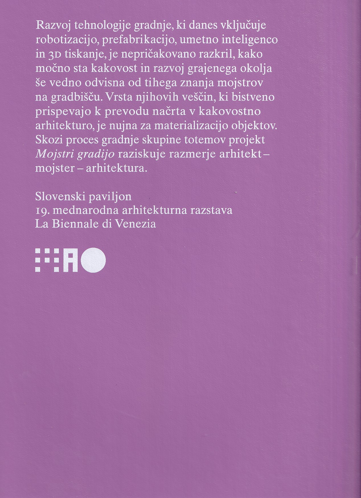 Strukturiran je kot dramaturški preplet arhitekturne teorije in zgodovine, statističnih analiz slovenskih gradbišč, tehnične predstavitve totemov, gradbenega dnevnika, debat z mojstri, razmišljanja o arhitekturni risbi in literarnega teksta. V njem so na enakovredni ravni izpostavljeni in povezani svetovi arhitektov, gradbincev in mojstrov.
